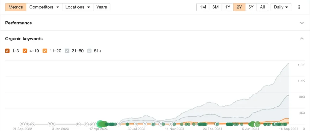 - Current Status: As of August 2024, 1,150 keywords ranked