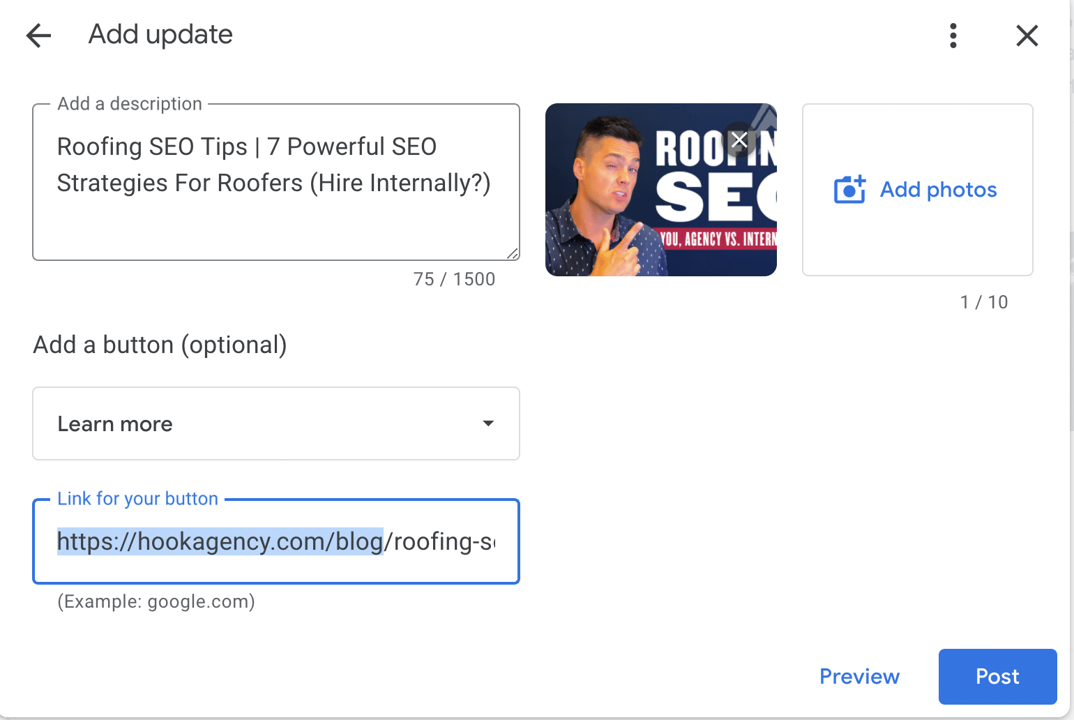 The more Google can identify that you’re profile is 100% filled out, the more likely they will be to serve that listing.