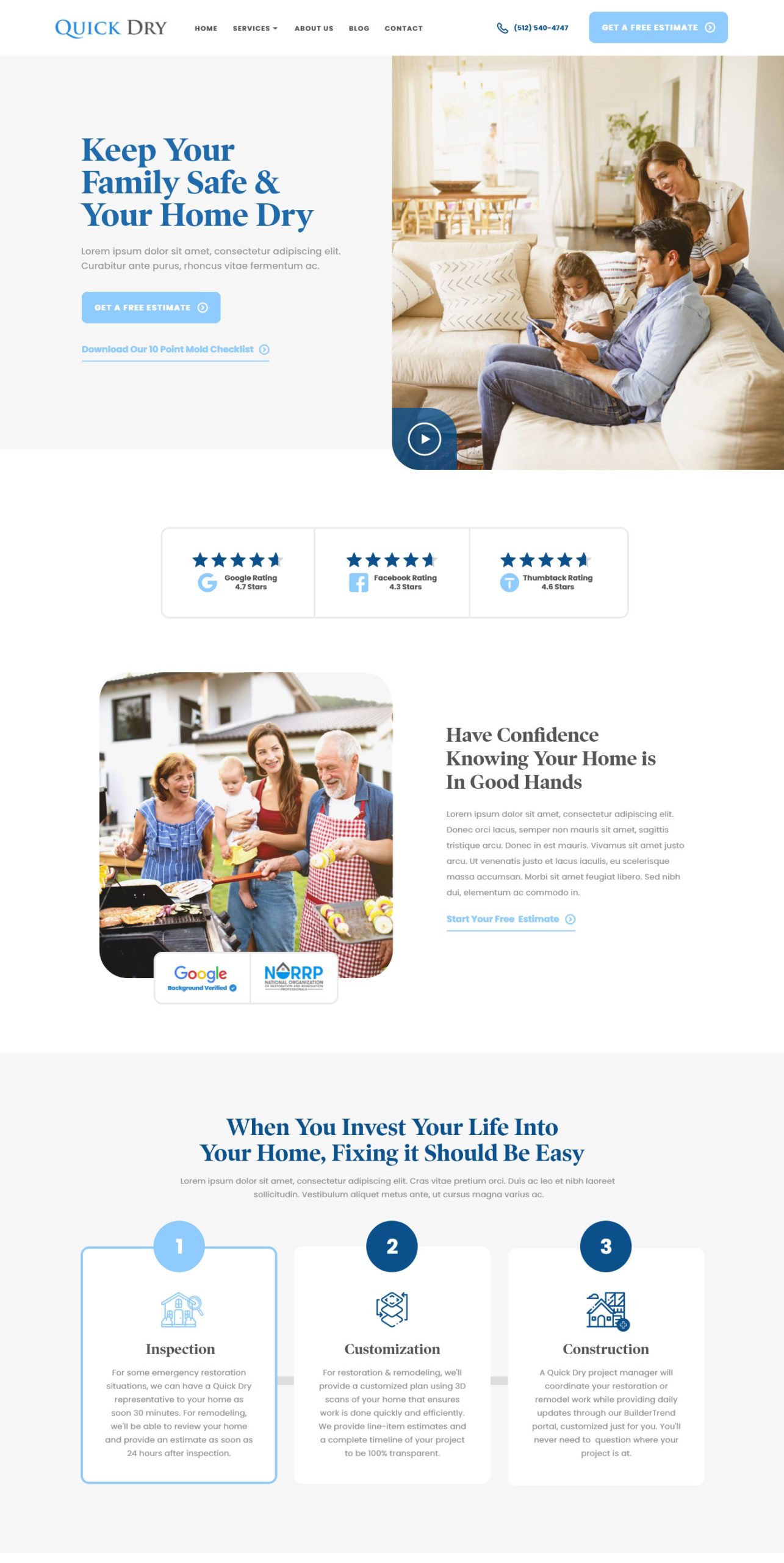 QuickDry needed a website that represented them well to ideal customers and we are currently working through this design process with them. We identified their ideal customers, the reviews and organizations that will help people trust them, and the key pieces of information people would need to make a decision. Well-Designed water mitigation or disaster recovery websites will help people imagine themselves after they’ve been helped by your company. It’s not enough to tell them how awesome you are, you want them to identify with your current customers and imagine themselves in their shoes.