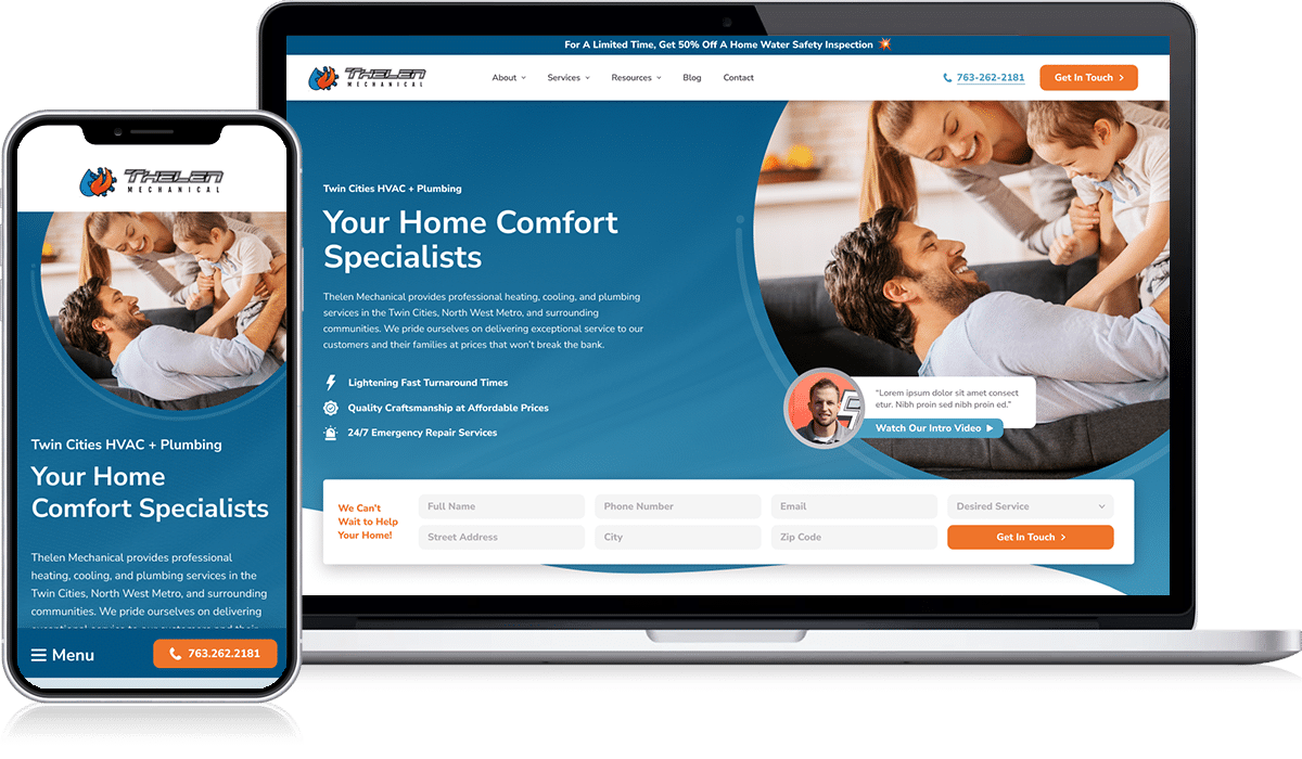 2. Thelen Mechanical (HVAC and Plumbing Website by Hook Agency)