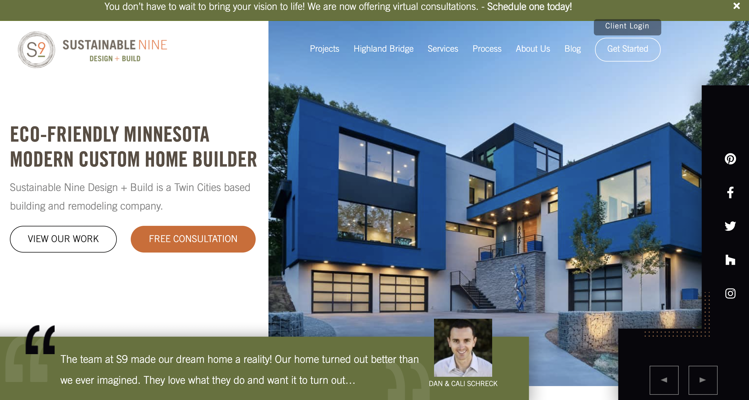 Sustainable Nine offers modern customized home building, so we built them a modern and customized website.