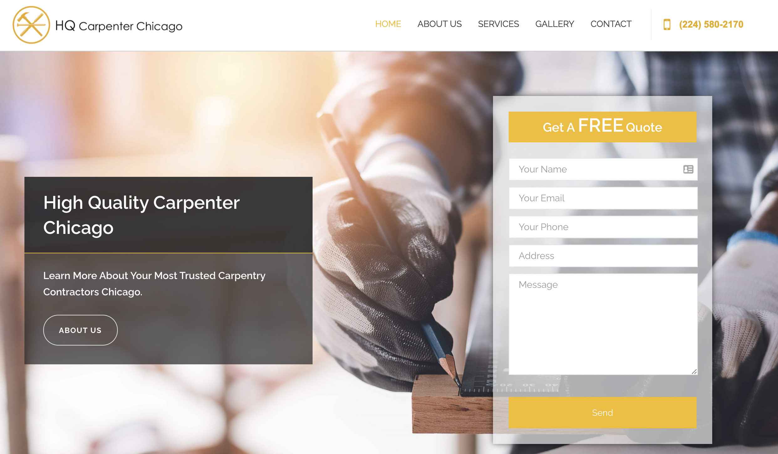 What could be better: The website is very light on carpenter content. Although there is a gallery of previous carpentry and remodeling projects, the rest of the website is fairly bare. The overuse of white space makes their website feel a little empty.
